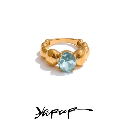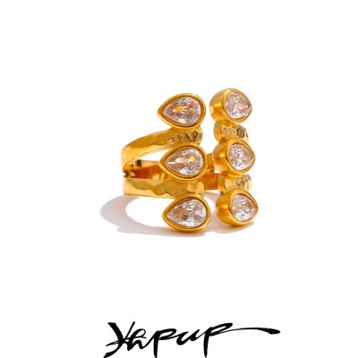 Yhpup Waterproof Fashion Stainless Steel Pink Green Cubic Zirconia Adjustable Open Ring Gold Color Unique Bling Charm Jewelry