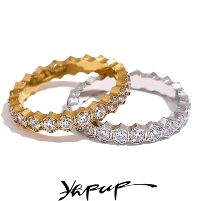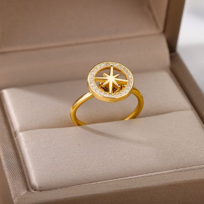 Size 7.5 Cubic Zirconia Casting Golden Ring Stainless Steel High Quality PVD Plated Finger Jewelry Gift