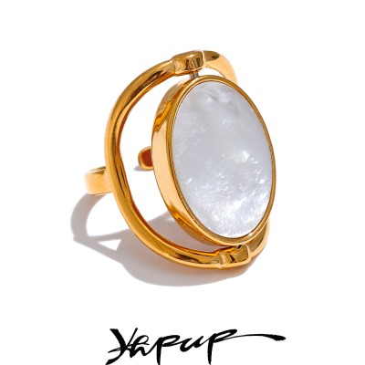 Exclusive Natural Stone Shell Rotatable Open Ring France Exquisite Stainless Steel Unique Jewelry for Fashionable Women