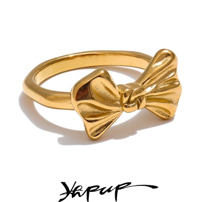 Yhpup Exclusive Trendy 316 Stainless Steel Bow Knot Finger Ring PVD Water Resistant Metal Attractive Chic Jewelry Women