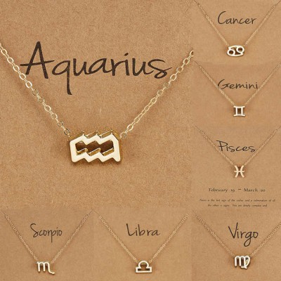 Birthday Gift Gold Plated 12 Zodiac Sign Pendant Wish Card Charm Gold Chain Choker Astrology Necklace Jewelry for Women