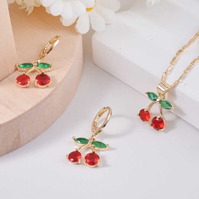 Fashion Design Link Chain Gold Necklace Crystal Cherry Necklace Set Fashion Necklace for Women Daily Wear