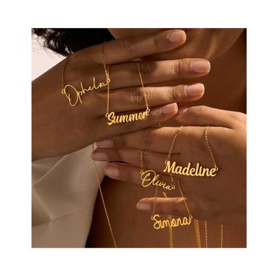 Gold Plated Fashion Fine Jewelry Stainless Steel Chain Pendant Choker Custom Personalized Name Necklaces for Women Birthday Gift