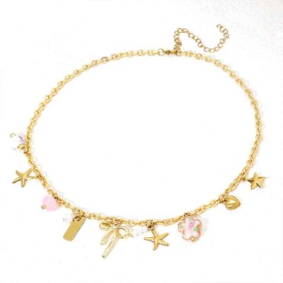 Fashion Jewelry Stainless Steel Gold Plated Ocean Beach Bow Heart Flower Charms Pendant Necklace for Gift