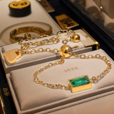 Fashionable Copper Circle Cubic Zirconia Chain Bracelet For Girls Dainty 14K Gold Plated Bracelets with Green Emerald Stones