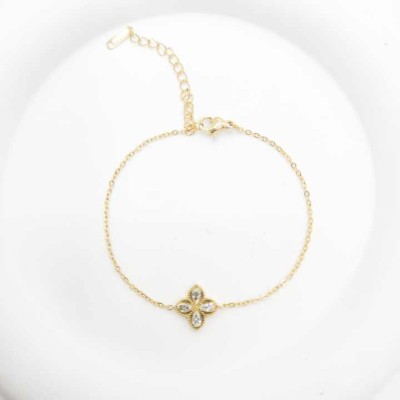 Fashion Bracelet with Flower Cubic Zircon Bracelets Bangle 18k Gold Thin Chain Bracelet for Wrist Women Jewelry Set Party