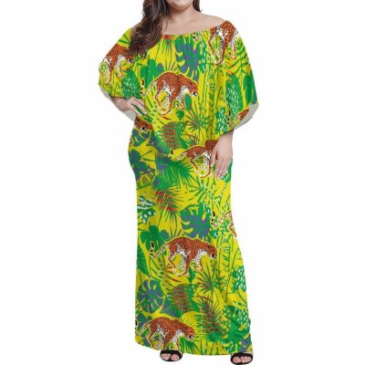 Summer Casual Off-Shoulder Long Boho Printed Chiffon Dress Plus Size A-Line With Sleeveless Natural Waistline ODM Supply Adults