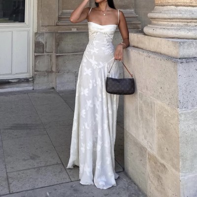 Sexy Lady Women's Elegant Sleeveless Backless Evening Prom Back Lace up Floral Jacquard Maxi Dress