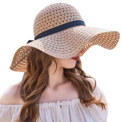 Women's Wide Brim Floppy Straw Hat with Bow UV Protection for Summer Beach Travel Fishing Business Daily Outdoor Activities