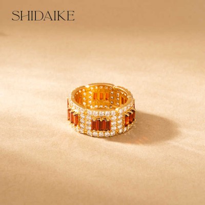 Women Constant Color Square Rhinestone Vertical Ring Strong French Retro Zircon Ring Stainless Steel