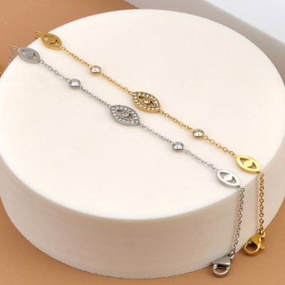 Lokaer Gold-Plated Evil Eye Bracelet for Women Stainless Steel Zircon Chain Bracelet Fashion Party Jewelry Gift B25055