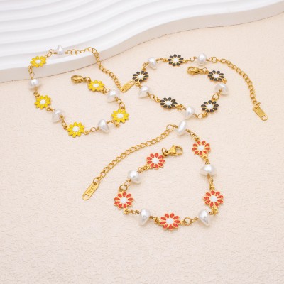 Cute Charms Flower Bracelet for Women Stainless Steel Metal Adjustable Fashion Chain Bracelets Girls Casual Party Jewelry Gift