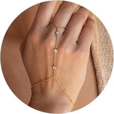 Hand Chain Ring Bracelet Jewelry for Women Girl Dainty 14k Gold Plated Trendy 2024 Summer Adjustable Chain Zircon Finger Ring