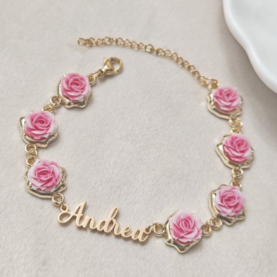 Customized Name Rose Pendant Bracelet Women's and Girls' Jewelry Stainless Steel Personalized Nameplate Bracelet Best Friend Gif