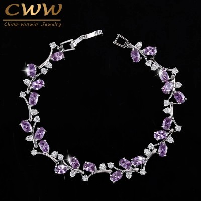 CWWZircons 6 Colors Options White Gold Color Handmade Austrian Crystal Rhinestone Purple Stones Bracelets Bangle for Women CB078