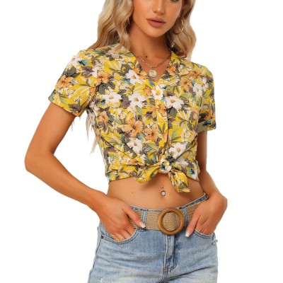 Women's Short Sleeve Floral Cute Print Button Down Blouse Hawaiian Casual Shirt Tops