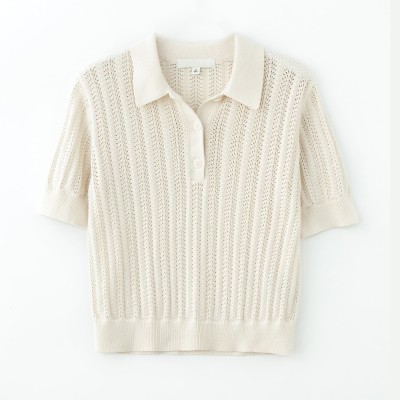 Casual Lapel Knitwear Sweater Vintage Short Sleeve Female Pullovers Chic Tops