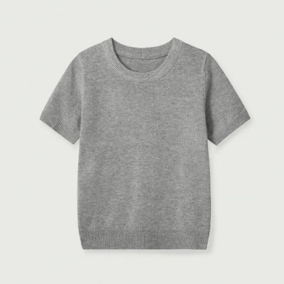 Women's Casual Fashion Round Neck Short Sleeve Plain Knit Top T-Shirt