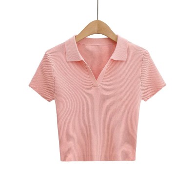 Women's v -neck Ribbed Knit Tee Short Sleeve