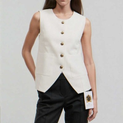 Neck Sleeveless Khaki Casual Suits Vest Waistcoat for Women Work Office Wear Elegant