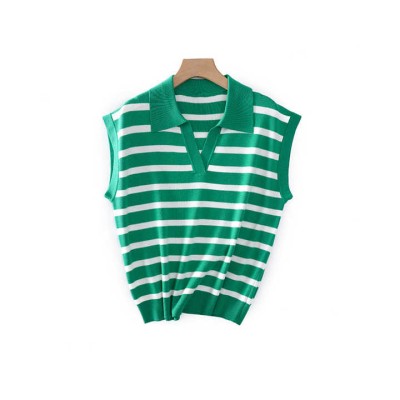 Neck Women Knitted Vest Casual Women's Striped Sleeveless Women's Knit Sweater Vest