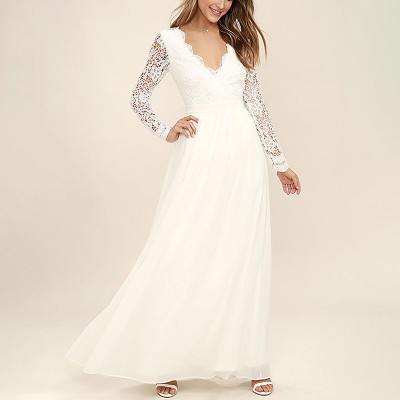 Lace Splicing V Neck Fashion Vestidos Elegant Women Clothes