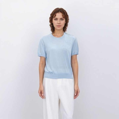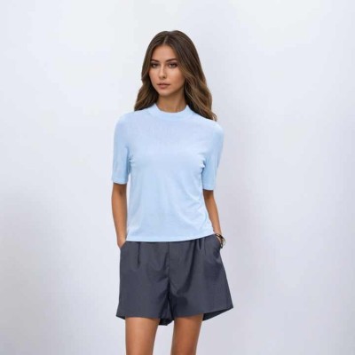 Women's T-Shirts Casual Style Short Sleeve for Polo T Shirts Soft Knitwear