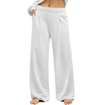 High Waist Women Jogging Pants Wide Leg Contrast Waist Sweatpants