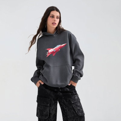 Hoodies With Pink Rocket Graphic Casual Loose