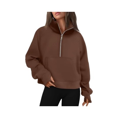Womens Sweatshirts Half Zip Cropped Fall Fashion Outfits