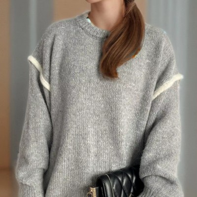 Popular Pure Color Soft Comfortable Sweater Top Autumn Knitted Women Elegant Long Sleeve Winter Casual Lady Clothes