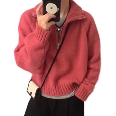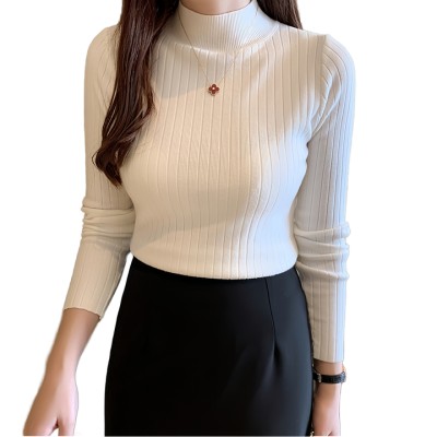 Women's Elegant Slim Short Knitted Long Sleeve Stand Neck Pullover Autumn Winter Solid Sweater Shirt