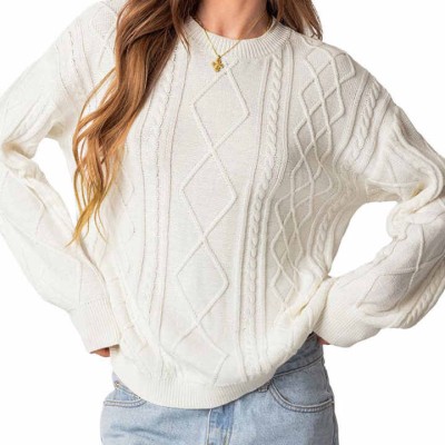 Women Loose Sweaters Thickened Winter Sweater Long Sleeve Jumper Cable Knit Sweater