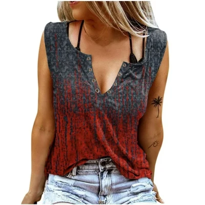 Women's Summer Plus Size 1XL-8XL Sleeveless Camisole with American Flag Print Tank Ladies V-neck Fashionable Casual Vest