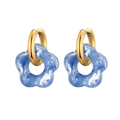 New Flower Resin Acrylic Drop Earrings Gold Color Round Circle Stainless Steel Ear Buckle Hoop Earrings For Women Jewelry Gift