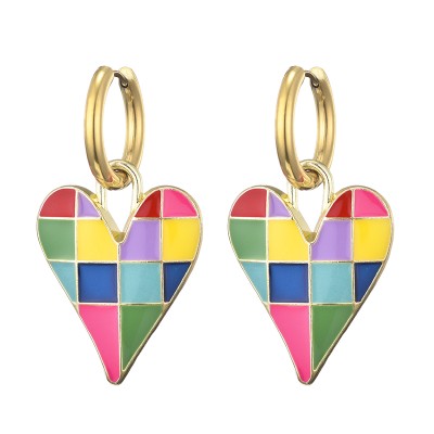 Colorful Love Heart Pendant Gold Color Stainless Steel Earrings For Women Jewelry Vintage Statement Enamel Round Hoop Earrings