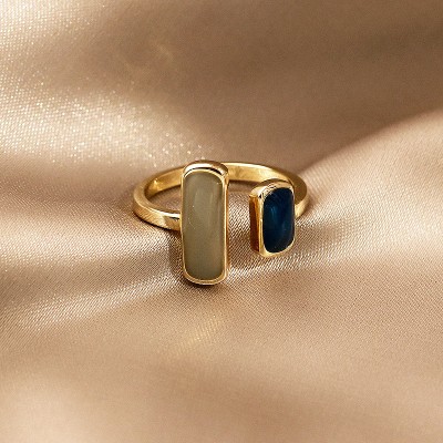 Yhpup Exquisite Candy Multi-Color White Pink Blue Yellow Resin Adjustable Ring Gold Color Stainless Steel Summer Jewelry Gift