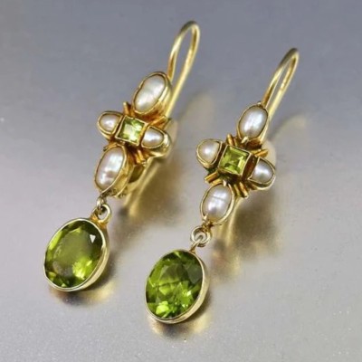 Classic Trend Earrings Gold Color Swirl Green Stone Dangle Earrings for Women Jewelry