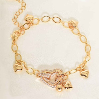 Fashion Jewelry Bracelets Gold Plated Link Chain Bracelet Heart Shape Cute Zirconia Adjustable Bracelet for Women