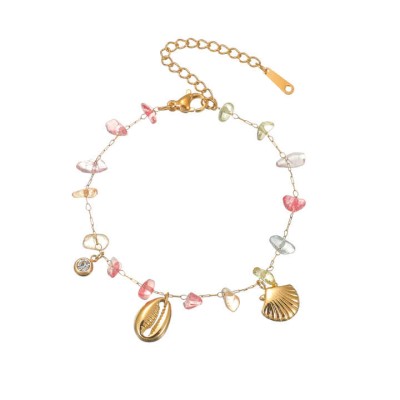 Minimalist Design Natural Stone Beaded Bracelet Stainless Steel Link Chain for Women No Fading Accessories
