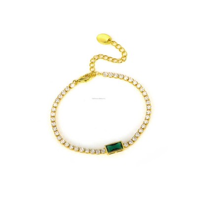 Fashionable Copper Circle Cubic Zirconia Chain Bracelet For Girls Dainty 14K Gold Plated Bracelets with Green Emerald Stones