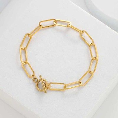 Hip Hop Waterproof Gold Plated Stainless Steel Bracelet Natural Pearl Paperclip Chain Women's Bracelet Jewelry