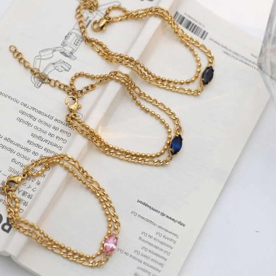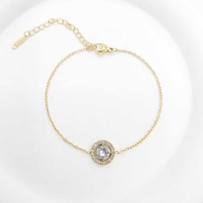 Women's Trendy 18K Gold Plated Stainless Steel Bracelet Simple Design Fashion Chain Link Bracelets with Zircon