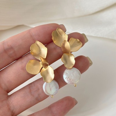New 925 Sterling Silver Drop Earrings Golden Flower Petal Pearl Elegant For Women Girl Gift Jewelry Dropshipping Wholesale