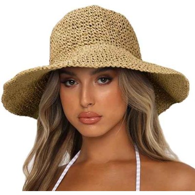Women's Summer Straw Hat with Wide Brim Solid Pattern Foldable All-Match Sun Hat for Travel Vacation Seaside Beach