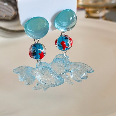 Cute Goldfish Earring For Women Creative Transparent Goldfish Design Earring Unique Koi Fish Earrings Statement Jewelry 2025 New