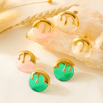 Trendy Gold Color Stainless Steel Dangle Earrings For Women Colorful Round Resin Stud Earrings Women Wedding Ear Jewelry