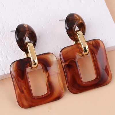 Fashion Square Resin Acrylic Drop Earrings For Women Hollow Geometric Big Statement Trendy Steel Needle Stud Earrings Jewelry