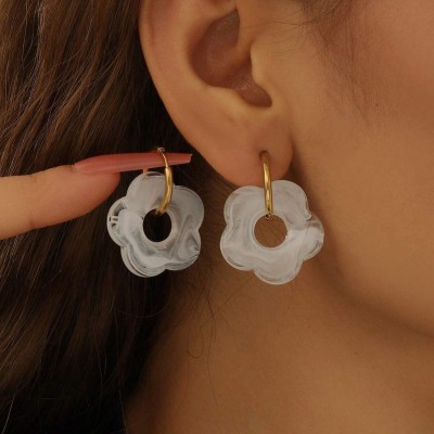 2025 New Trendy White Resin Flower Hoop Earrings For Women Fashion Metal C Shape Statement Earings Jewelry Accessories