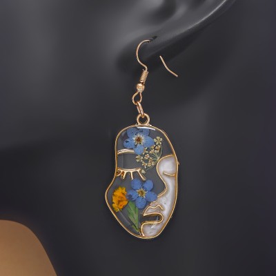 2pcs Face Contour Dried Flower Resin Earrings Pendant Eternal Flower Earrings Suitable for Women Fashion Trend Jewelry Pendant